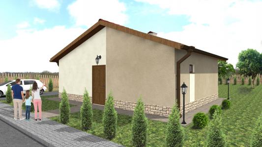 Сградата е разработена като стандартен идеен проект за еднофамилна къща, отговаряща за нуждите на едно семейство. Външните размери 850 на 650 см. я правят универсална за поставяне в повечето имоти с минимално лице към улицата 12,50 м‘. Предвидена е с веранда, която да се ориентира към Юг, или към Изток, в зависимост от ориентацията на къщата.